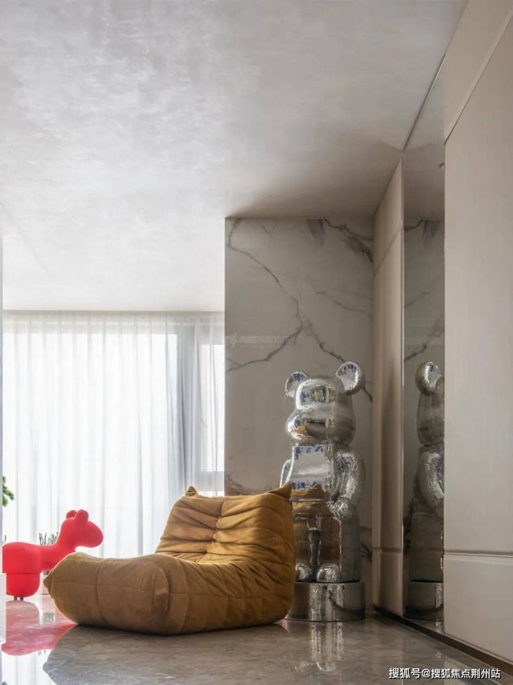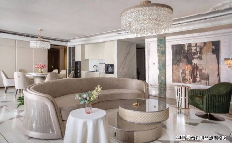 基于业主对江景的钟爱,设计师将江面的曲线融入设计元素中,让这种自然之美在室内空间中得到延续,从而打造出既现代又具有摩登质感的雅奢住宅。