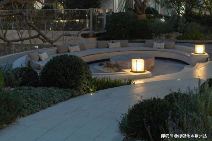 设计巧妙利用高差,将瀑布水景与休憩平台融为一体。水流从平台处奔腾而下,化为一道动态飞瀑。落水声与光影交织,最终环绕形成一个充满安全感与归属感的静谧景观空间.