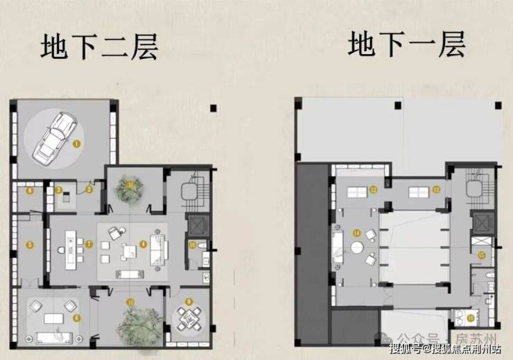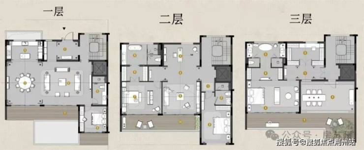 先来看联排,建面约330/390/500m²,依户型不同,巧设三面围院和南北分院两种格局。