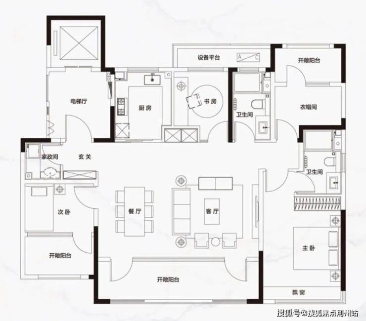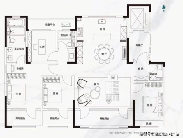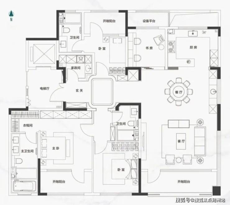 143㎡户型设计在保证四室的前提下,打造了超7米的宽境客厅,极具空间延展性,为休闲、娱乐提供了更多可能;U型厨房、独立家政间、书房N+1布局等等也将空间价值发挥到极致,满足生活所需。