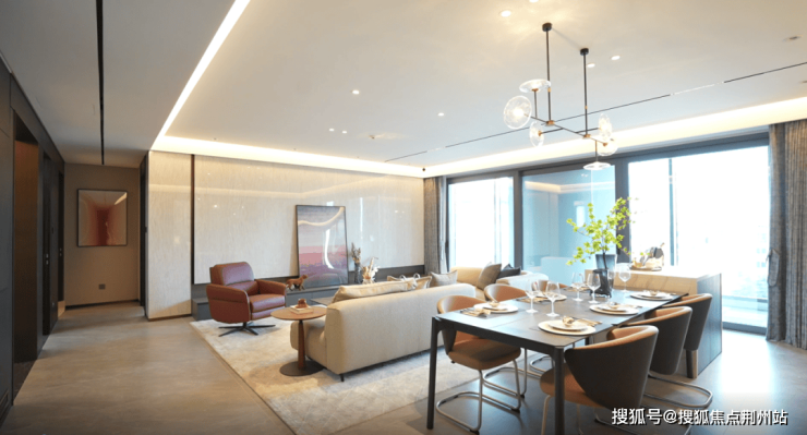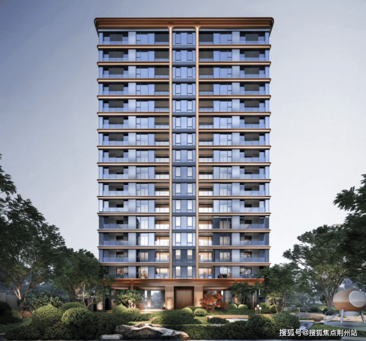 在外立面的打造上,对标国内外一线豪宅配置,大面积使用金属铝板+巨幕玻璃组合,再配以简约的“弧线”,展现通透纯净、轻盈典雅的国际化形象;自下而上生长的竖向线条与横向流动的圆弧线条交叉勾勒,带来立体、流畅的视觉冲击,以光影镜幕的流光艺术为灵感,打造出别具神韵的独有“鎏光感”。