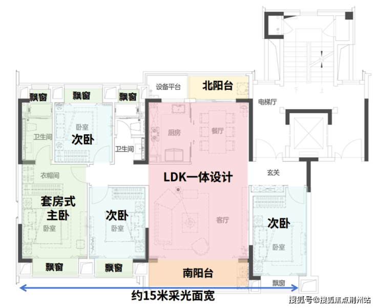 四开间朝南,全屋不仅做到南北对流,更拉开约15米的南向面宽,无论是视觉空间还是采光通透,都是相当优秀。