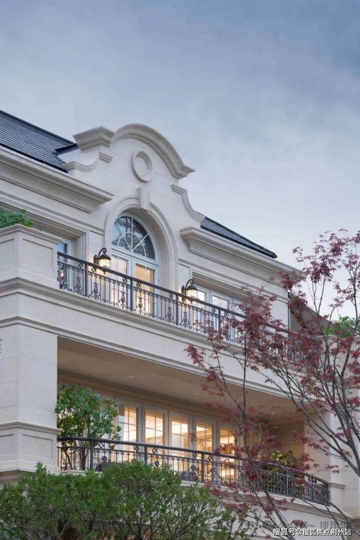 1. 色调纯净,度假美学:立面以浅暖米黄石材为底,点缀金属、玻璃,焕新法式奢华艺术气质。罗马柱与宝瓶柱阵列、隽永雕花,凝练地中海浪漫神韵,恢宏典雅。