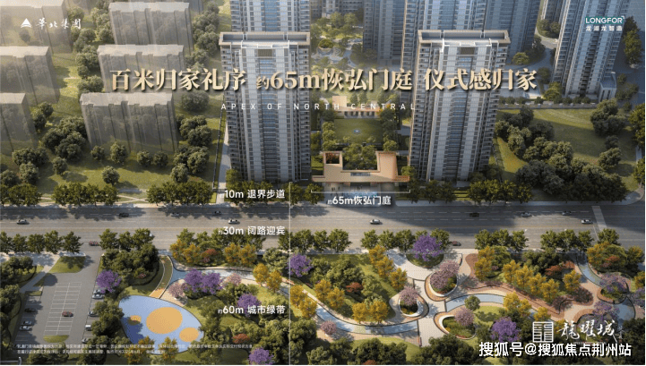 北大门对向规划约60米宽市政绿带,贯穿东西,打造业主专属“森氧跑道”,以生态过滤器的姿态,为社区隔离城市喧嚣。
