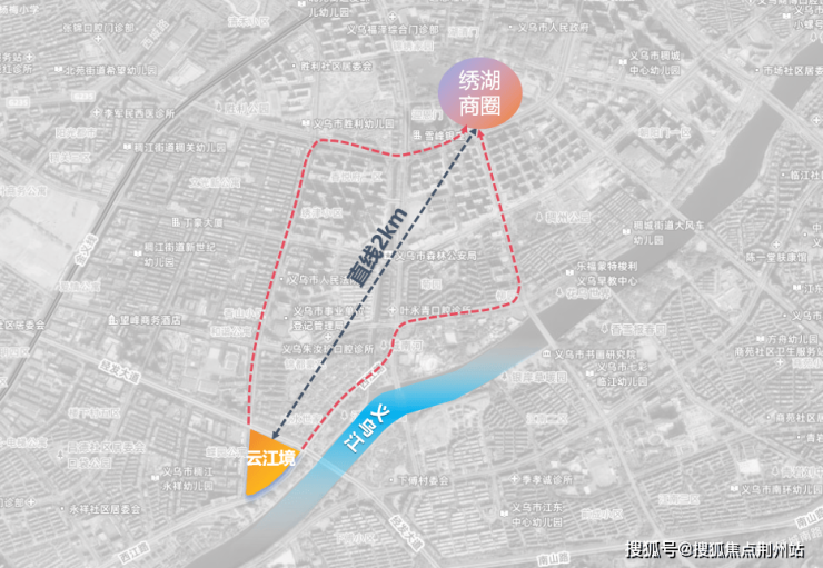 首先,你得知道它在哪里:经发大道和西江路的黄金交叉口,正对着义乌江流经市中心时,那道最难得的“黄金缓弯”距离绣湖中心区仅2公里,光是这个地址,就自带“老钱气质”