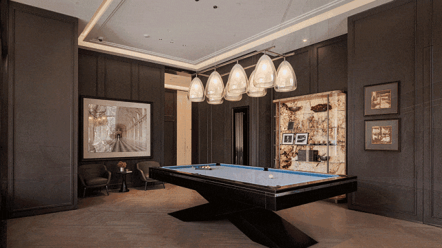 作为归家第一站,主入口大堂三层叠水,拾阶而上,穿过社区大堂,三座漂浮岛屿对应中国传统园林“一池三山”,归家的轨迹,遍布长江的丰美气韵。