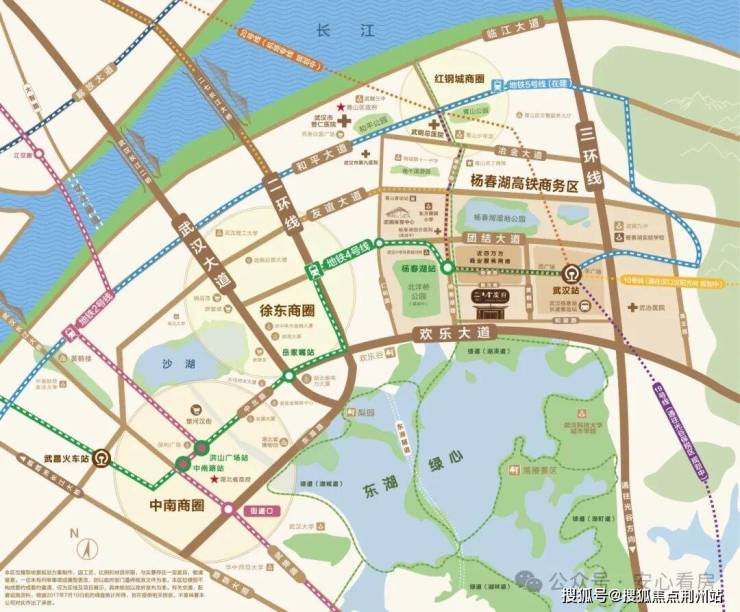 地铁:项目下楼就是地铁4号线/10号线(规划中)杨春湖站,到站地铁5号线/19号线(规划中)/20号线(规划中)武汉火车站站直线距离也仅有约600多米。