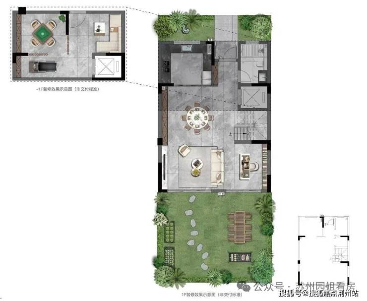 约195㎡联排,也带来了前庭后院、层层花园、无需二次改造的真顶层露台等超高附加值(约55㎡庭院+89-98㎡拓展空间)。