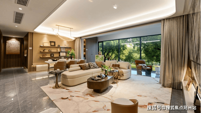约7.5m面宽客厅外接进深约2.1m的奢阔阳台,模糊了室内外的界限。这里可以是周末派对时的社交主场,欢声笑语,觥筹交错;也可以是独自品茗时的静思角落,对月观星,闲适自在。