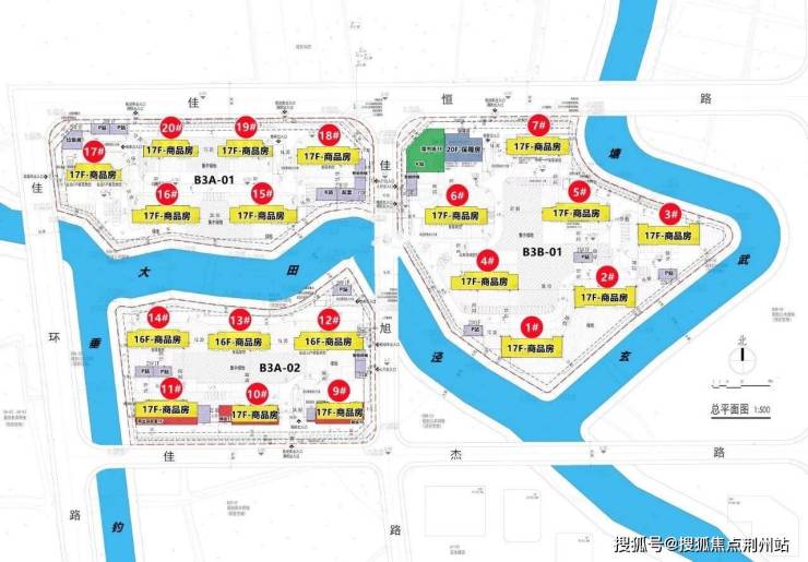 共20幢楼、16-17层的高层、标准层高约3米、架空层(约3.5米-4米)