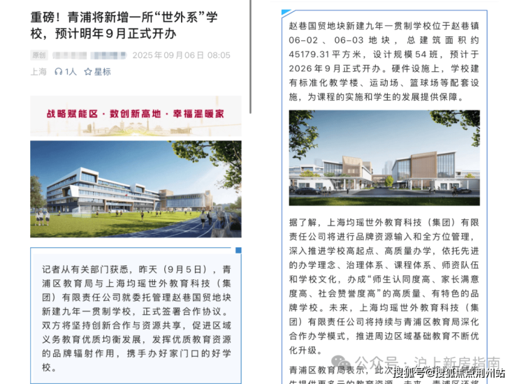 9月5日“世外”正式官宣落定赵巷,这所世外托管的公办九年制学校为国贸代建学校,与项目仅一路之隔,未来大概率对口。(期房不承诺学区,学区划分以教育局公布为准)。
