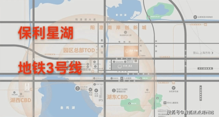 约500米到园区星湖街3号线方湾街站上盖,与1号线、5号线、8号线、14号线(规划)交汇向西约1公里的园区站,约15分钟通勤上海,约1小时内到达长三角核心城市