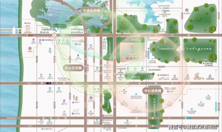 项目位于光谷中心城,毗邻新月溪公园,拥揽约48万方园区绿意。整个大盘建筑面积近130万方,集商业、办公、居住于一体,目前已汇聚5000+高知菁英、100+商业品牌,氛围非常成熟。