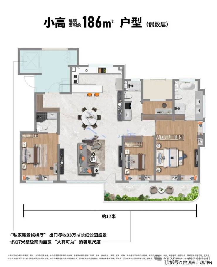 ✅ 品质户型:主力户型120-146-186㎡,全明通透设计,科学动静分区,宽绰客厅连接观景阳台,阳光与清风常伴。