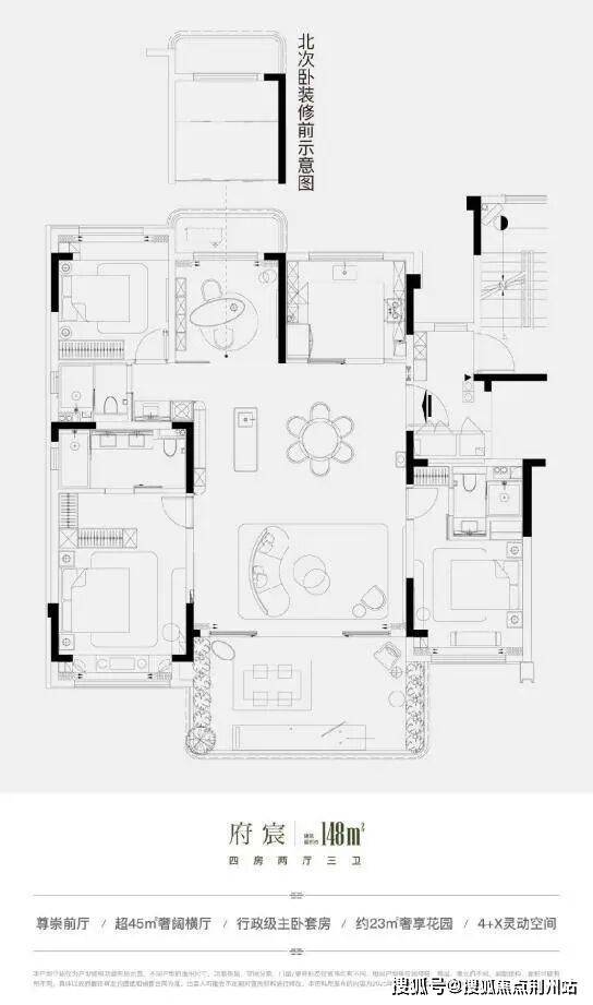 府宸户型 建筑面积约148㎡ 四房两厅三卫