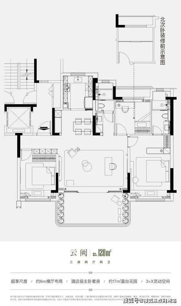 云阙户型 建筑面积约120㎡ 三房两厅两卫