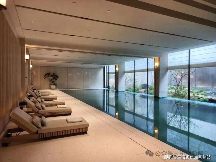 水面是一整块被驯服的黑绸,完整地盛着天花落下的暖光。光坠入水中并不刺眼,反而晕开成一片温润的琥珀色,随着水波微微地晃,像醒着的梦。池底的马赛克映着光,成为一片模糊而闪烁的星空。