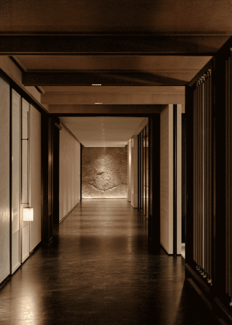 廊道将外界的喧嚣轻柔地滤去,以延续的宁谧铺陈底色,将每一次步履都引渡为一程静心的序曲,无声通抵此处。