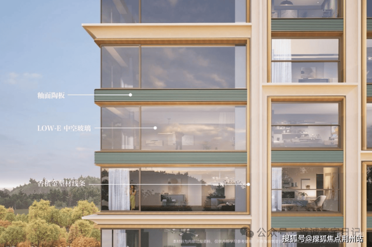 实现上海转角连续约 12米无柱全景舱户型,部分户型 270°转角飘窗以及全景舱户型的落地,贯彻「公园观礼台」主线,将景观充分揽入室内。