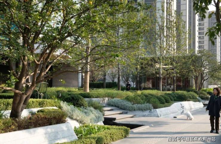 水景两侧的花园式商业内街,则为这份静谧注入恰到好处的活力:高低错落的绿植以宜人尺度围合外摆空间,人们可以在此社交、休憩,随步履流转感受步移景异的花园景象。藏在城市之森的店铺盒子,像岛屿一般成为住户日常歇息的节点。