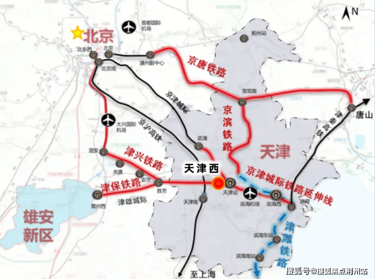 天津西站作为“轨道上的京津冀”核心节点,天津西站已经成为天津规模第一的高铁枢纽站。京津城际、津兴城际、京沪高铁汇聚于此,还有正在建设中的京滨城际联络线,将与北京形成4条高铁通道。