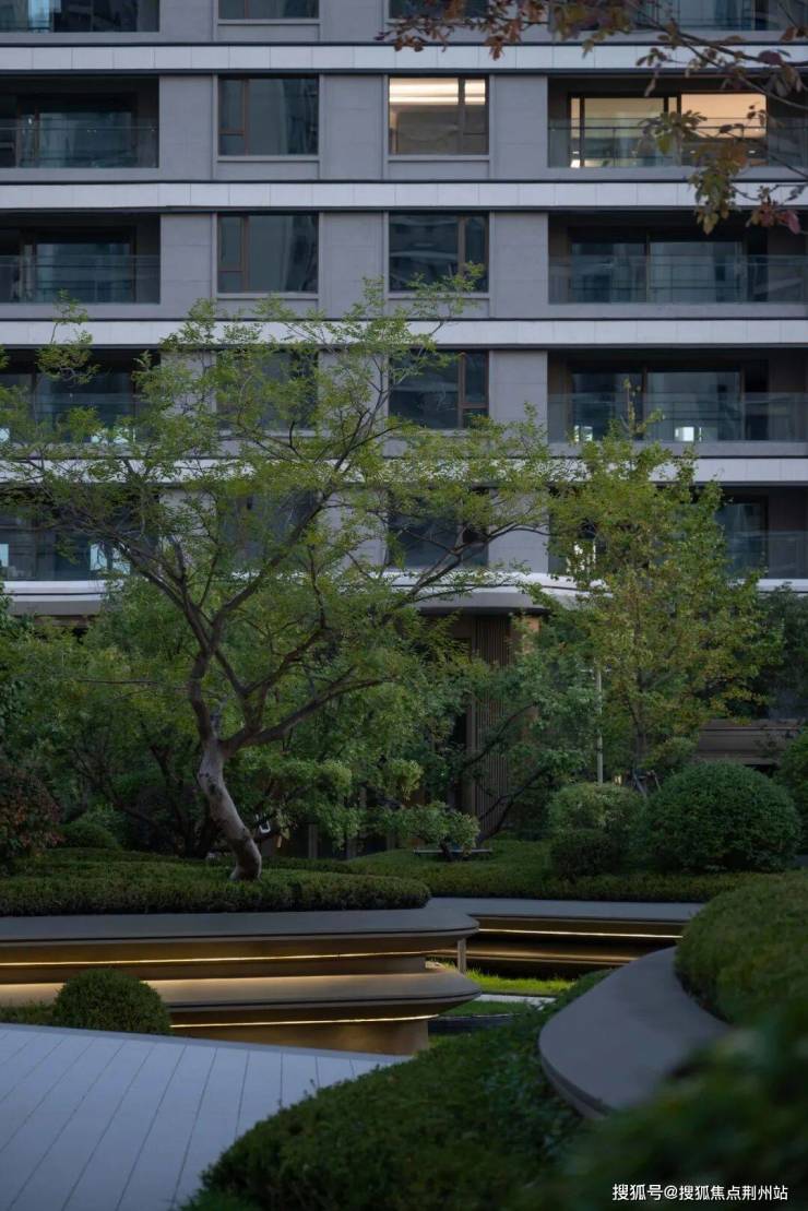 半环形构造依托地形顺势而起,一廊多用,双向功能体验四季变化,目光所及,皆是生活。华灯初上,呈现出精致温馨的场景,创造一种放松舒适与品质奢享的平衡。