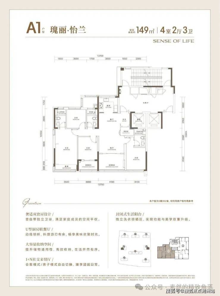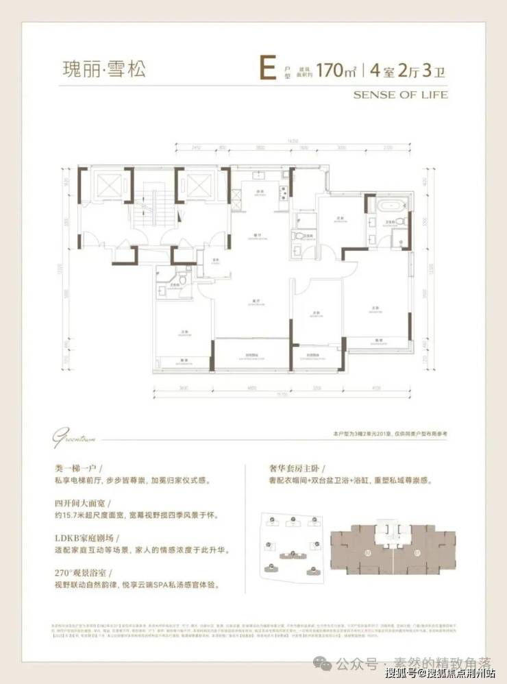 建面约170方户型,高质价比的四房优选: