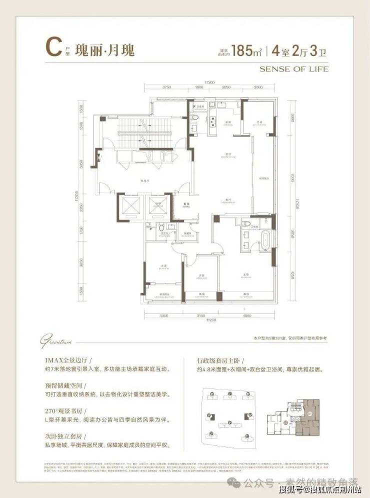 建面约185方户型,高品质的寰景奢宅: