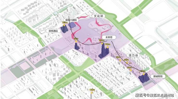 未来塔:位于CAZ的正中央,建成约300m,将成为嘉定甚至是上海西北第一高楼,是真正的C位地标(规划中)。