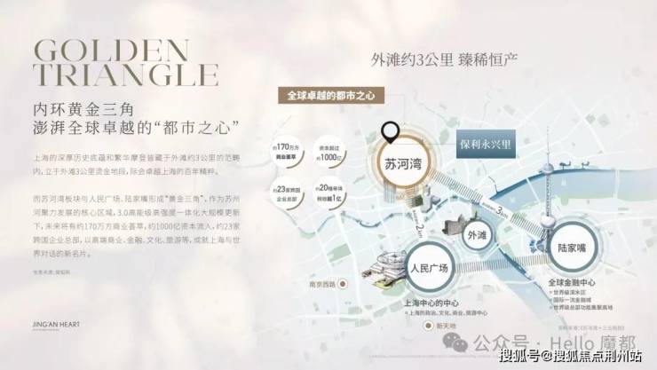 距离市中心人民广场距离仅约2公里,苏河湾商圈直线距离约900米,距离北外滩直线距离约700米,距离大悦城商圈约1公里,市中心最便捷、最繁华、最热闹的配套。