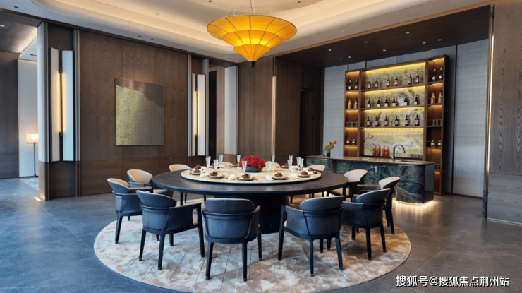 工作和家庭的维系,免不了攒饭局,高定雅宴厅,豪配16人大圆桌、备餐区、沙发区。