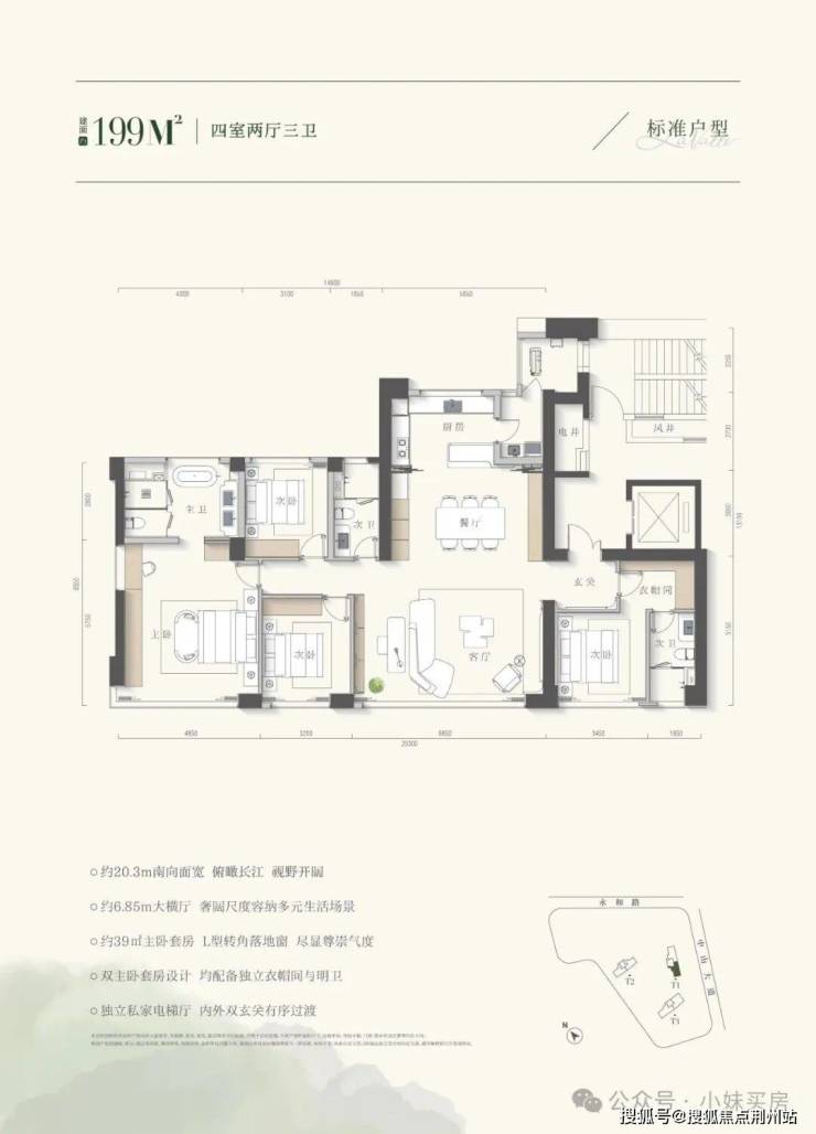 户型之“升”:199㎡升级为四房三卫,独梯独户定义私密尊崇