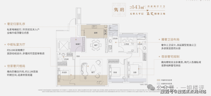 建面约143平的大四房则是大批改善置业心心念念的抢手货,南向四开间,双套房设计,让改善户型直接豪宅化!