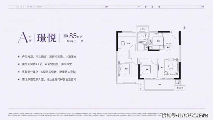 85㎡三房两厅以精巧格局实现空间最大化利用,双卧朝阳的设计让阳光洒满日常,明厨明卫的配置保证了居住的舒适度与健康度。