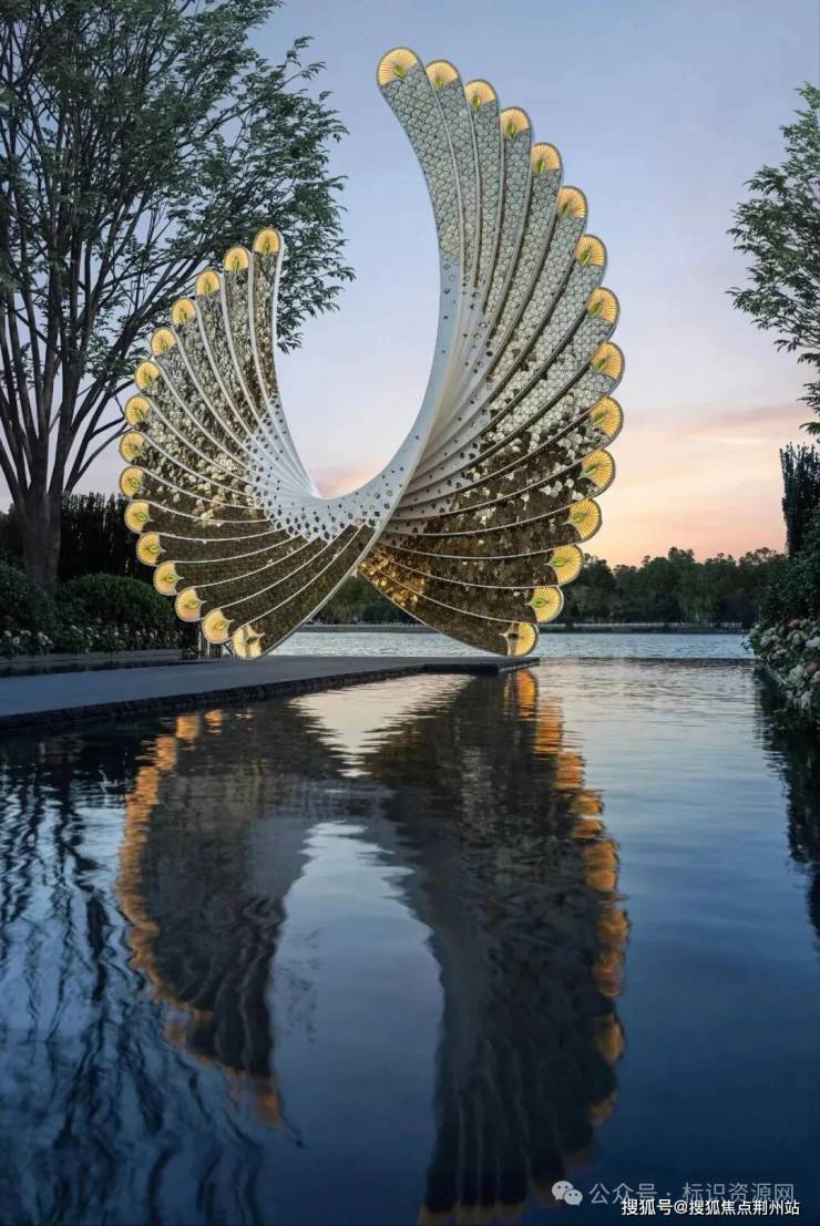 苏州凤起潮鸣的标识设计思考 /以“水韵”为灵感凝练出流动的曲线材质上采用奢石、黄铜等金属润的质感与金属的光泽彼此成就在色彩上呼应建筑色调达成视觉统一在设计上将建筑语言转化为标识形态于隐奢中见格调 于克制中显价值标识不仅是功能的承载 更是意境的延伸