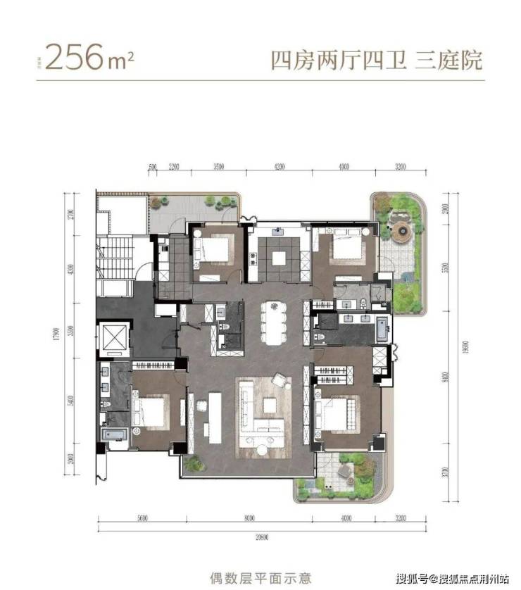 这就是“超四代宅”的颠覆手笔,搭配赠送的合计约70㎡的阳台与空中庭院,它的格局气场已然超越了市场上常规300㎡级大平层。