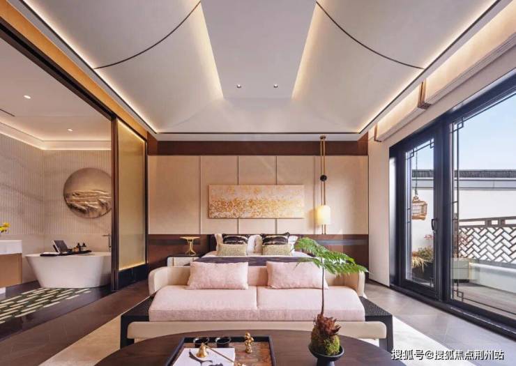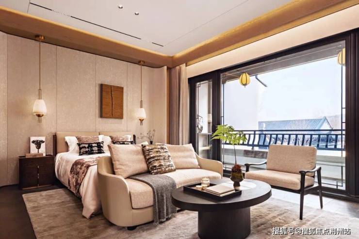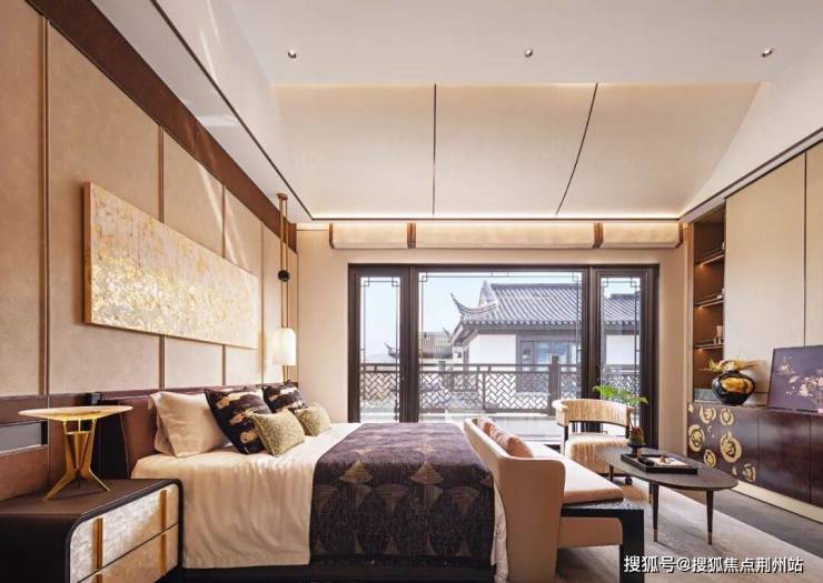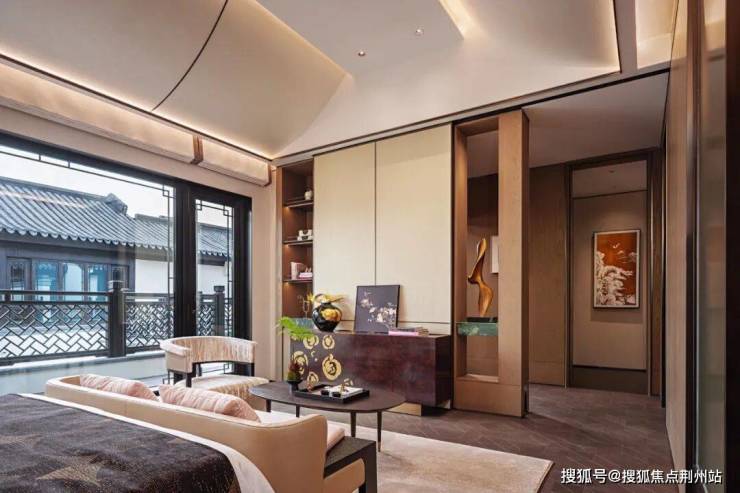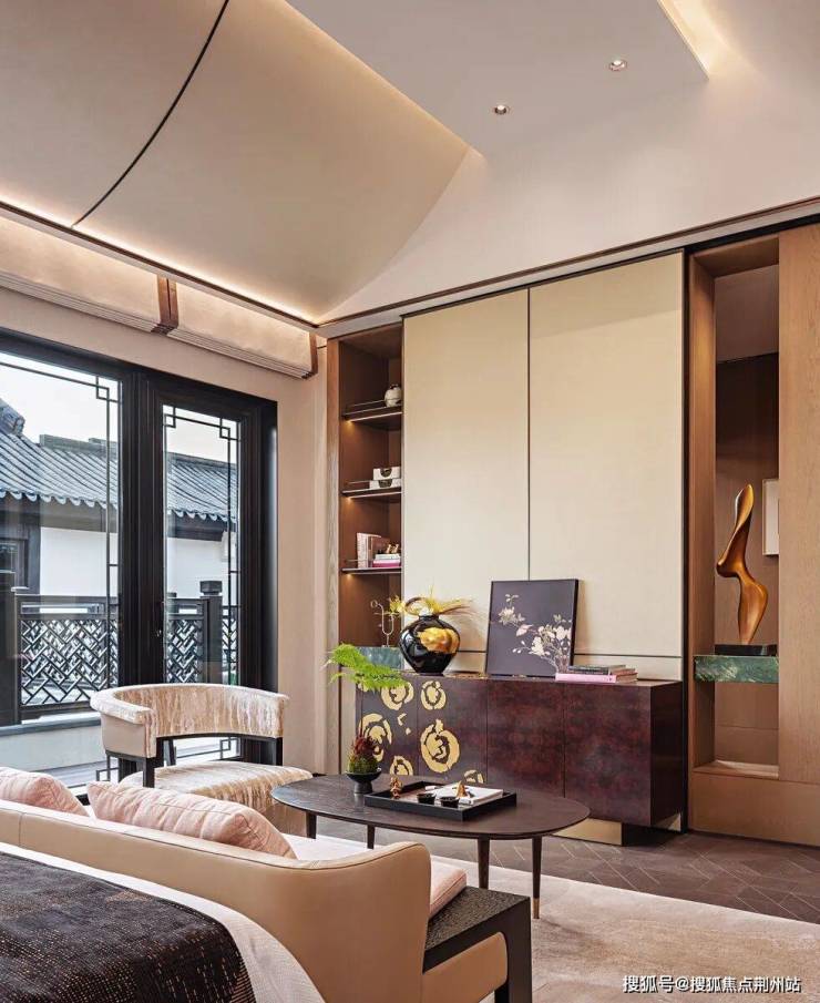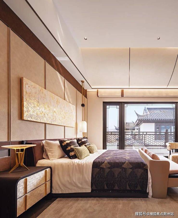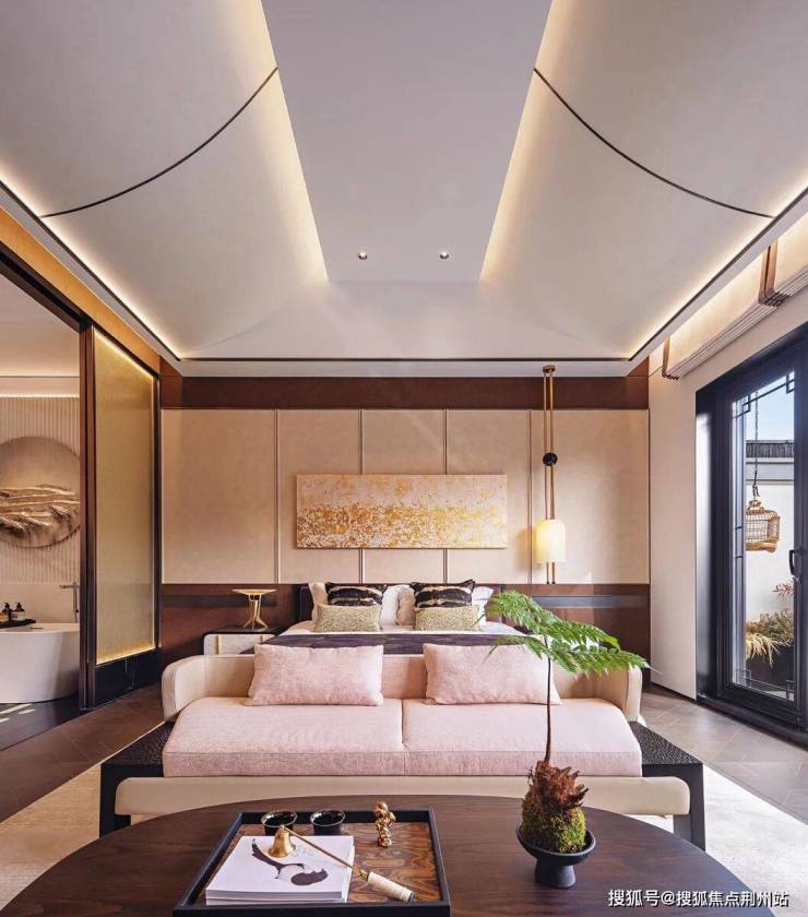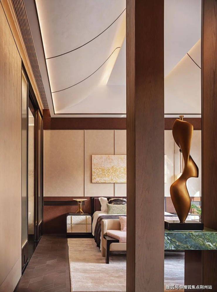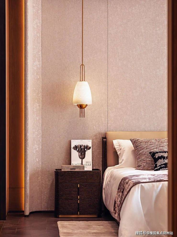 二层次主卧结合恬意悠然的色彩搭配削减空间厚重感的同时,沉淀东方意韵,亦能呈现出多元交织的动人细节。