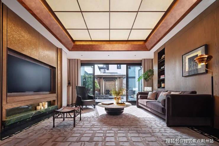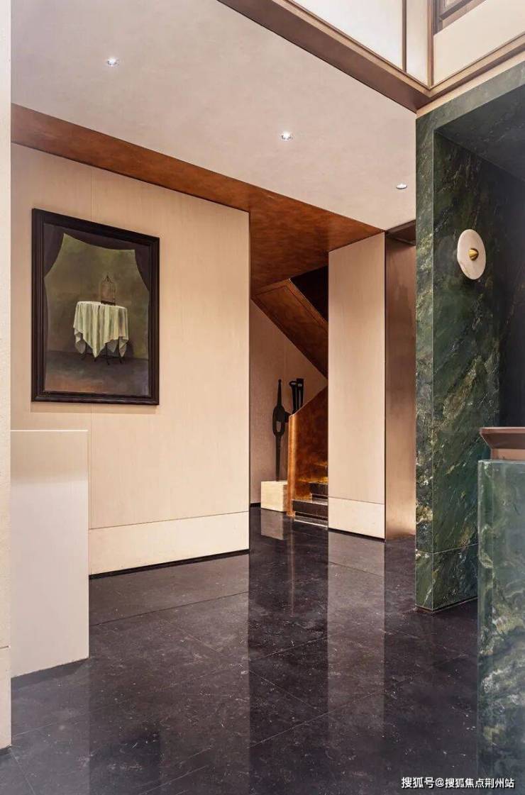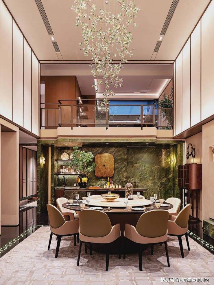 集艾设计以“海派东方”的硬装设计理念重构东方意境。负二层家宴厅挑空5.3米,金箔水墨绘屏与绿色天然奢石形成虚实对话;三层主卧采用弧形吊顶设计,让传统坡屋顶呈现轻盈的当代形态。设计师从明代文人书房提取“通透”基因,通过建筑中式隔扇门把园林景观引入室内,令室内外交融如行云流水。特别定制的青铜色金属构件、经过数控雕刻的云石拼花,在极简轮廓中暗藏匠心密码。