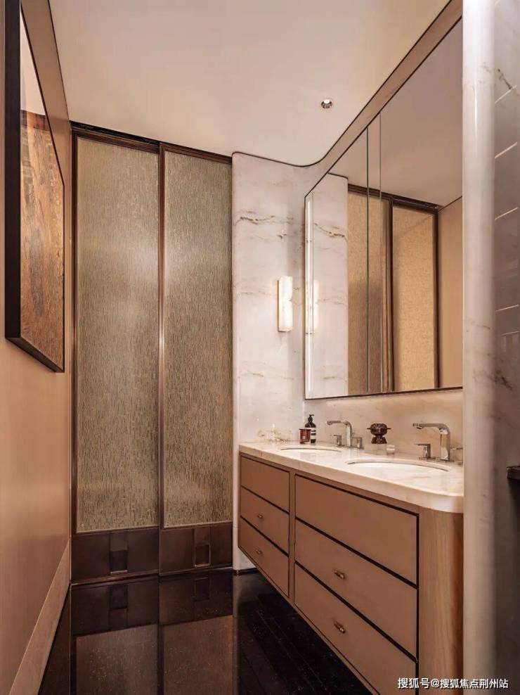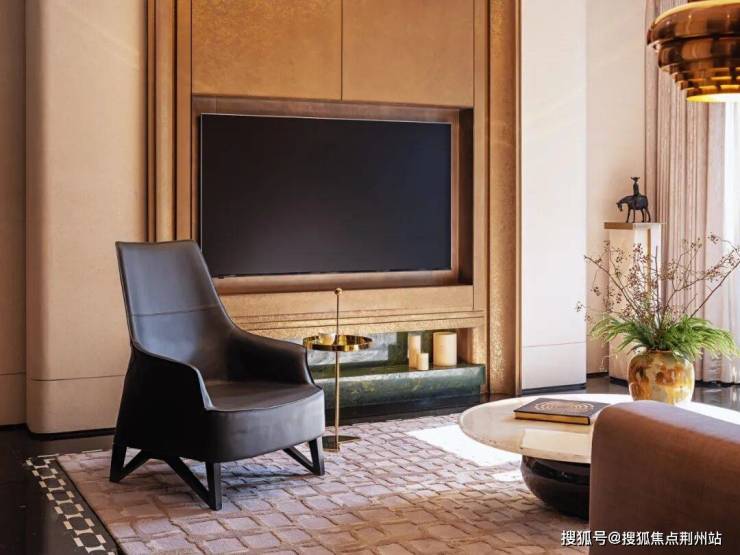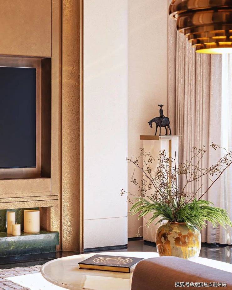 一层客厅及客房以温润淡雅为主调,材质的“柔”与质感的“奢”相互碰撞,有序、丰富、松弛、层次分明,悄然释放休憩空间精奢的质感之美。
