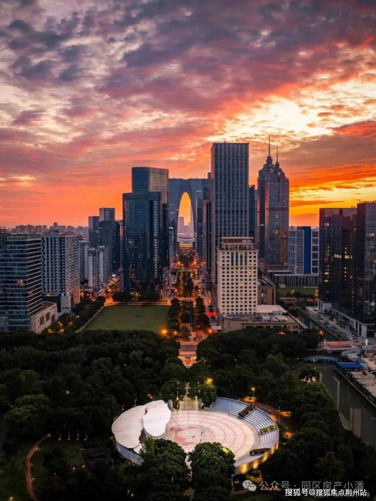 园区发展的第一站、示范区,东方之门、苏州中心、环球188等地标伫立,CBD的商业规模、办公集群规模、公园、学校资源云集。