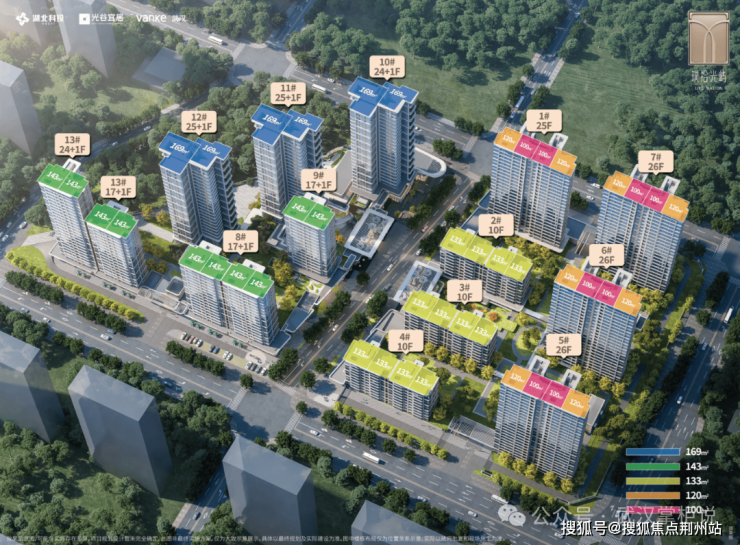 项目去年底已报规,包括5栋住宅,部分楼栋为带空中花园的真四代,总户数294户,户均建面约112㎡,容积率仅1.6。