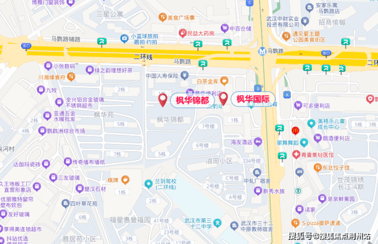 枫华国际共2栋楼,1号楼16层,2号楼44层超高层。出小区就是地铁口,距离小学和初中都有一定距离,坐一站地铁可到小学。