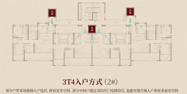 每个户型都能实现电梯入户,户户都带有电梯前厅。部分户型配备独立电梯前室,中间户通过双向开门电梯,也能享受专梯入户和电梯前室。不管是大户型还是小户型,入户体验都做到了全面升级。这一设计在同等面积户型中是佼佼者,让业主每日归家都充满仪式感。