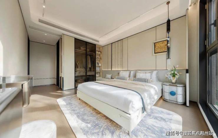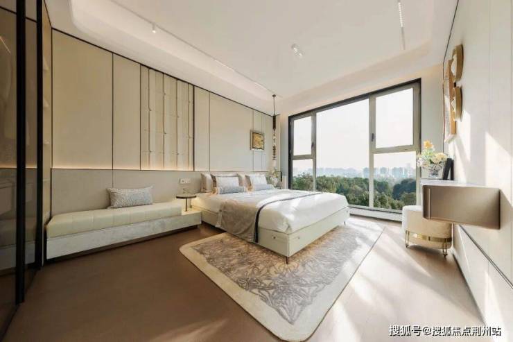 ③四房规制+主卧套房+主卧大落地窗设计:主卧开间达约3.5米,进深适宜,摆放一张舒适的大床后,两侧仍可放置床头柜。