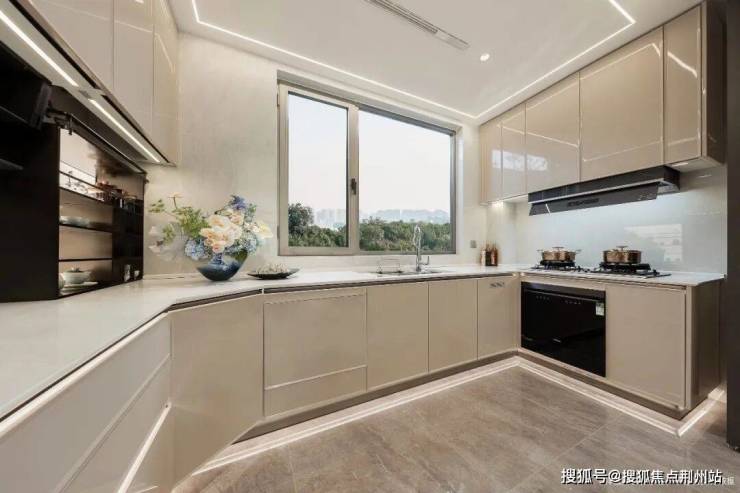 细节的重设:以厨房为例,更宽的岛台设计,只为放下超大大单槽;部分户型烟道外置,不仅让厨房更美观,也让柜体更多空间。