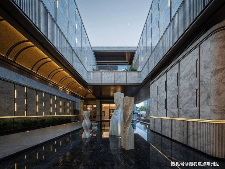 在整体空间组织上,项目以现代语汇重新诠释东方游园意境——空中花园与下沉庭院交错,层次递进的空间转换,形成 “大隐于市”之境,赋予归家过程以归属感。