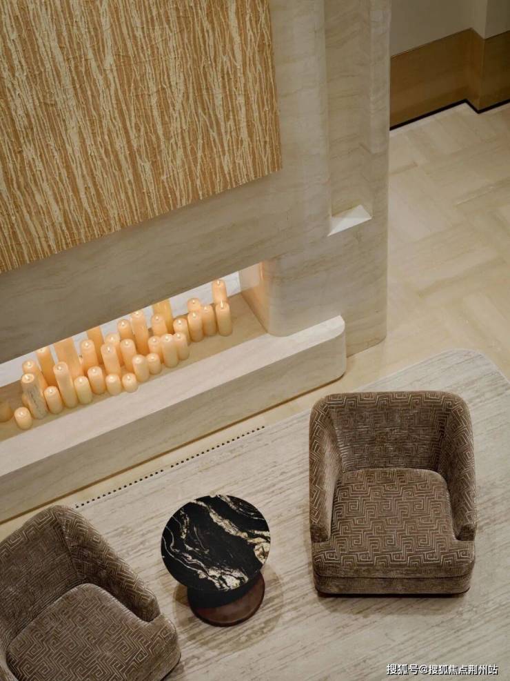 一層客廳軒敞通透,藏着生活的舒展。洞石電視背景牆依舊是視覺核心,天然肌理與淡雅色調,讓現代設計與杭城的溫潤相融。
