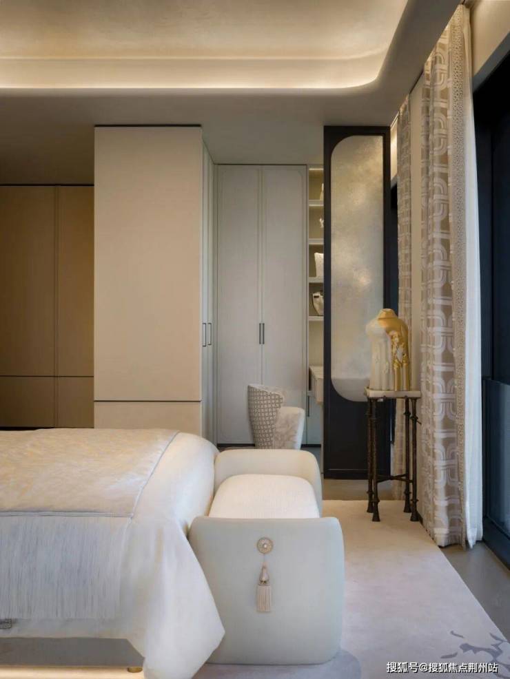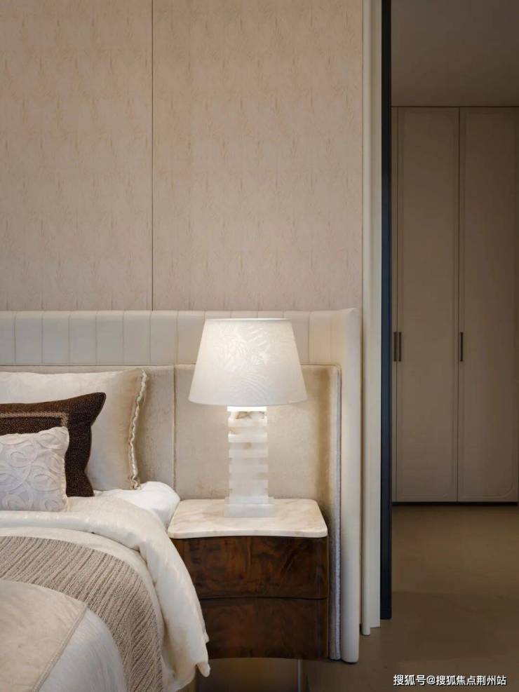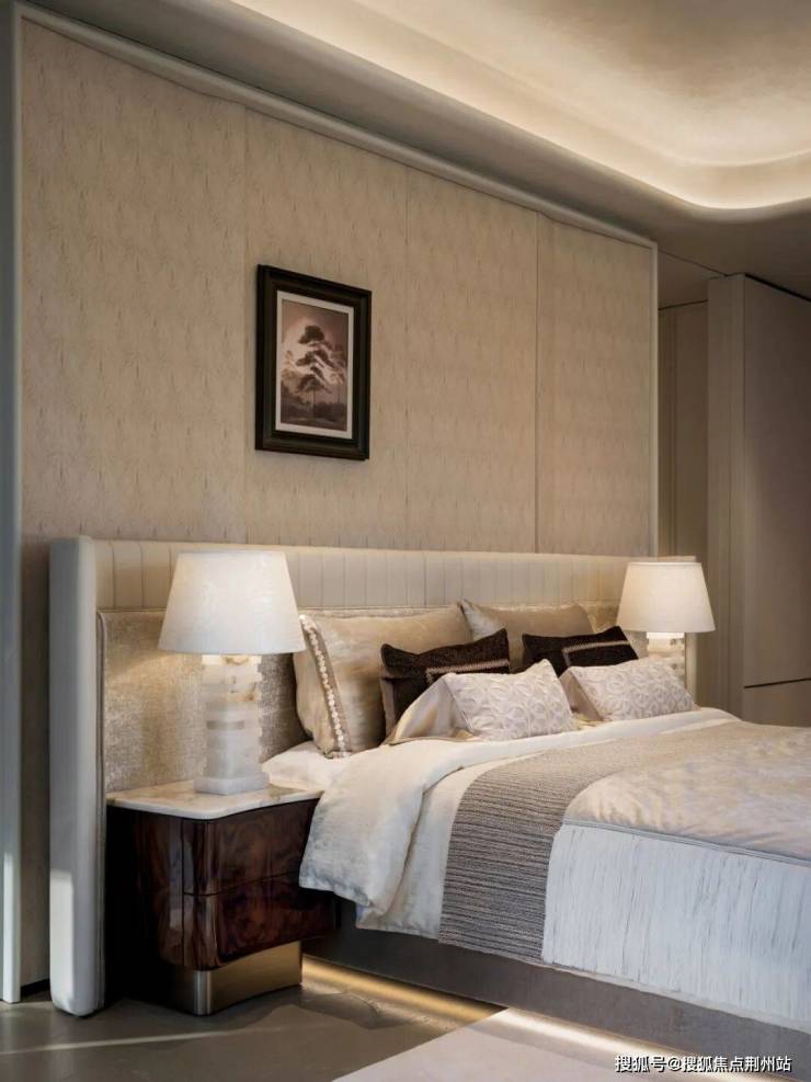 主臥設計刪繁就簡,溫潤色調搭配舒適質感,營造出安心放鬆的氛圍。