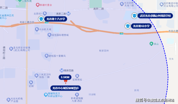 项目周边3.5公里2范围内有光谷十八小、光谷国际外国语学校、光谷42小等。并且东侧规划教育用地及幼小初一站式教育资源,据悉绿城会引入优质学校。