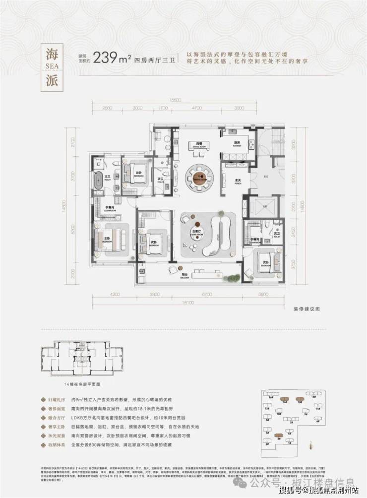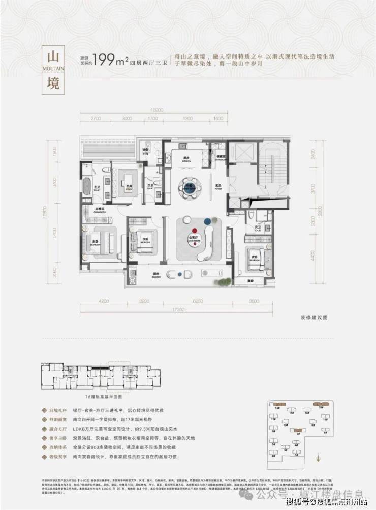 【主力户型】179㎡四房两厅三卫、199㎡四房两厅三卫、239㎡四房两厅三卫、269㎡四房两厅四卫(整体约179–395㎡大平层)